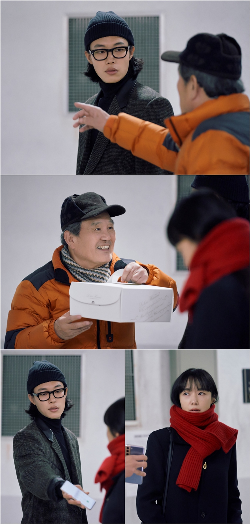 공개된 사진 속 부정과 강재, 그리고 창숙의 만남이 시선을 사로잡는다. 강재는 부정의 아버지 창숙과 같은 층 끝 집에 살고 있다. 여느 때처럼 아버지를 찾아온 부정이 엘리베이터 앞에서 다시 강재를 마주하게 된 가운데, 돌연 그를 불러세운 창숙과 두 사람의 반응이 흥미롭다. 한껏 들뜬 얼굴로 케이크를 내미는 창숙. 아버지의 돌발 행동에 당황한 부정과 난감해하는 강재의 표정이 창숙의 사람 좋은 미소와 대비를 이루며 호기심을 자아낸다.