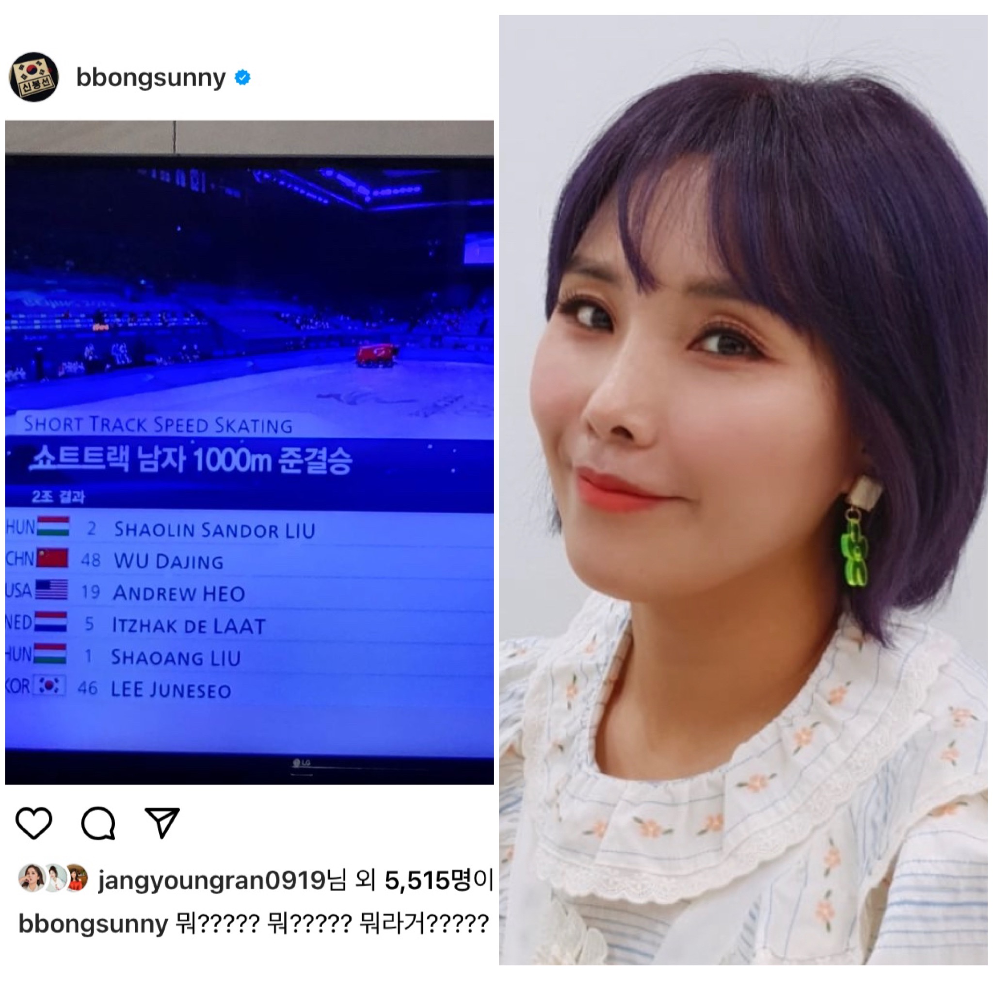 2022 베이징동계올림픽 쇼트트랙 경기에서 한국선수들이 편파 판정으로 실격 당하자 스타들이 한 목소리로 분노했다.