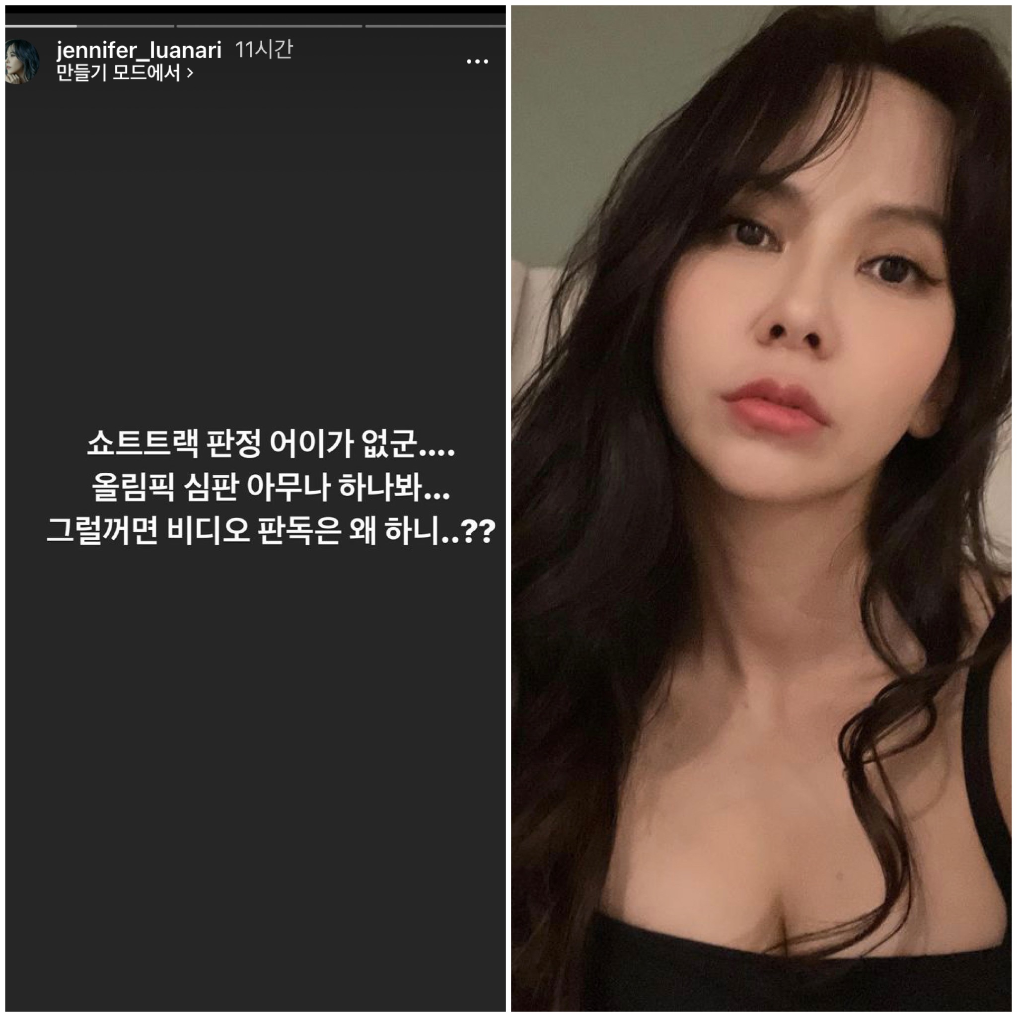 배우 김지우는 "쇼트트랙 판정 어이가 없군. 올림픽 심판 아무나 하나봐, 그럴 거면 비디오 판독은 왜 하니"라고 적었다.
