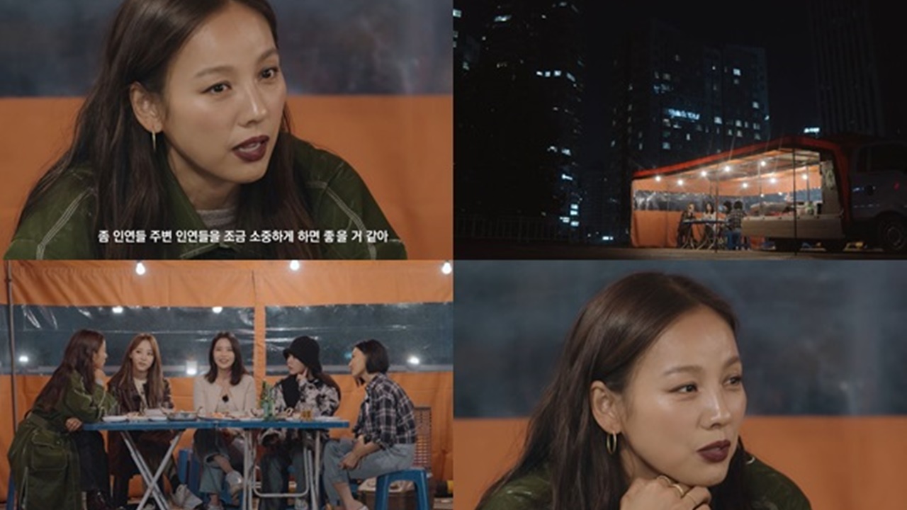 이효리 씨는 웨이브 오리지널 마마무 다큐멘터리 4부작 '마마무_웨얼 아 위 나우(MMM_Where are we now)'에 출연해, 네 명의 멤버와 포장마차에서 만나 술잔을 기울였다.