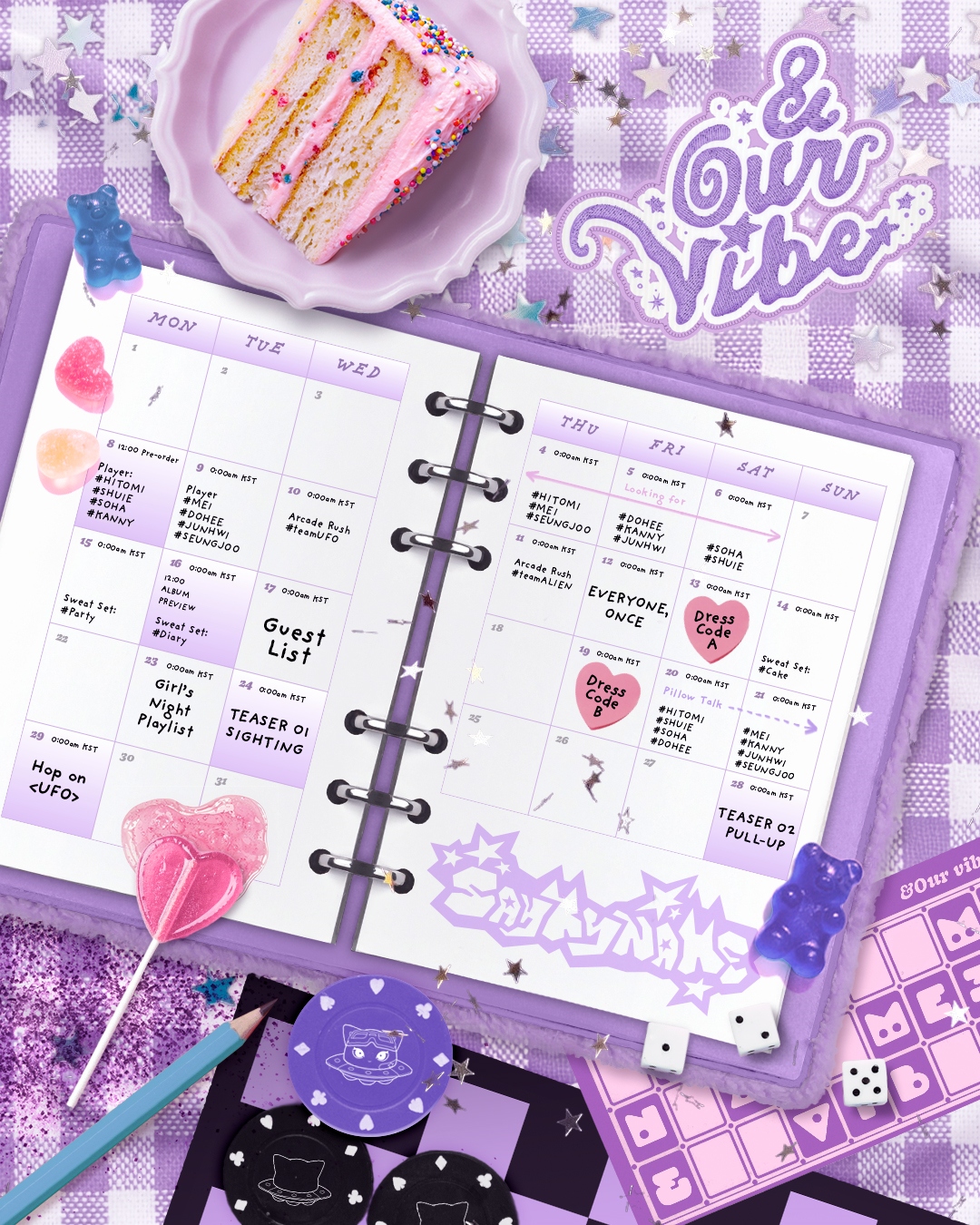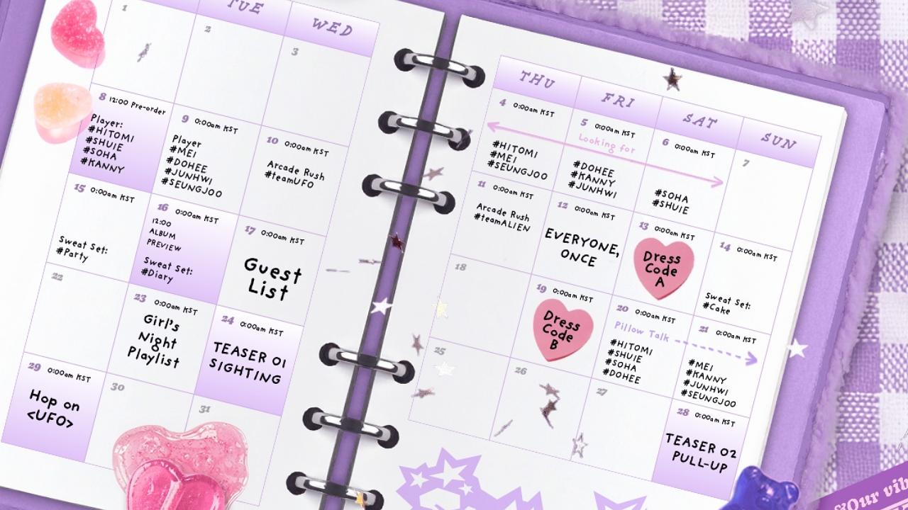 타임테이블에 따르면 오는 4일부터 멤버별 티저 콘텐츠가 순차적으로 공개된다. 특히 ‘teamUFO’, ‘Guest List’, ‘Girl’s Night Playlist’ 등 새 앨범 콘셉트를 암시하는 키워드들이 곳곳에 배치돼 기대감을 높였다.