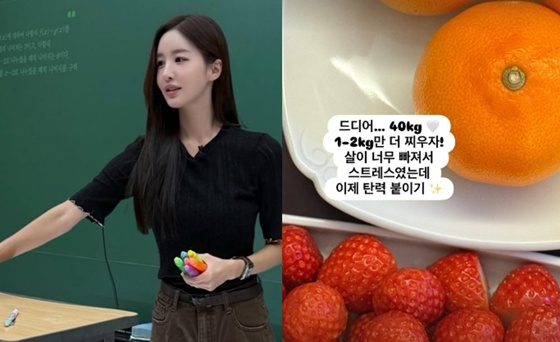 이아영은 지난 20일 자신의 SNS 스토리에 "드디어 40kg. 1~2kg만 더 찌우자. 살이 너무 빠져서 스트레스였는데 이제 탄력 붙이기"라고 적었다.