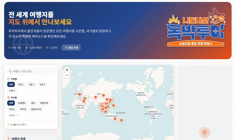 ‘독박투어’가 역대 여행지를 한눈에 볼 수 있는 전용 웹페이지 ‘독박투어 맵’을 공개했다.