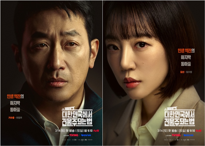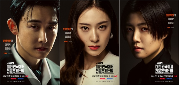 3월 14일 첫 방송되는 tvN 새 토일드라마 '대한민국에서 건물주 되는 법'(극본 오한기/연출 임필성/기획 스튜디오드래곤/제작 마인드마크, 스튜디오329/이하 '건물주')은 빚에 허덕이는 생계형 건물주가 목숨보다 소중한 가족과 건물을 지키기 위해 가짜 납치극에 가담하며 벌어지는 서스펜스를 그린 작품. 부동산 공화국 대한민국을 배경으로, 건물을 둘러싼 욕망과 갈등을 담으며 예측불허 전개를 펼칠 예정이다.