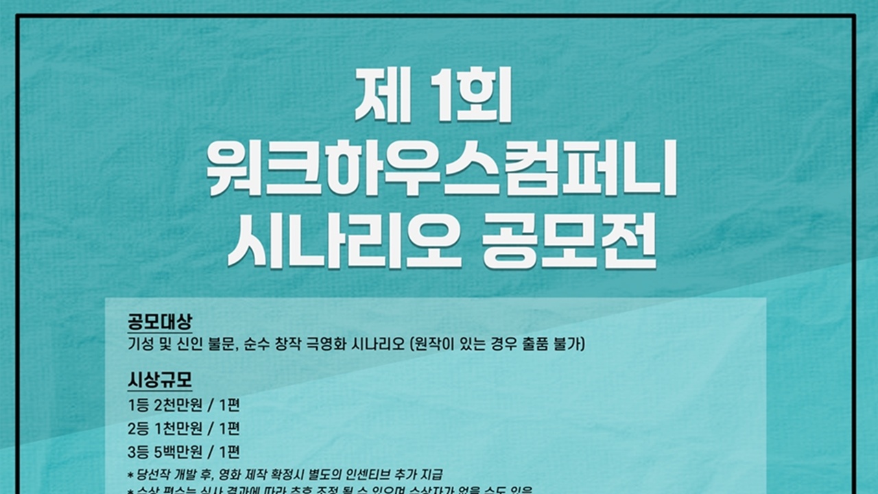 3일 워크하우스컴퍼니는 “제 1회 워크하우스 시나리오 공모전을 진행한다“라고 밝혔다.