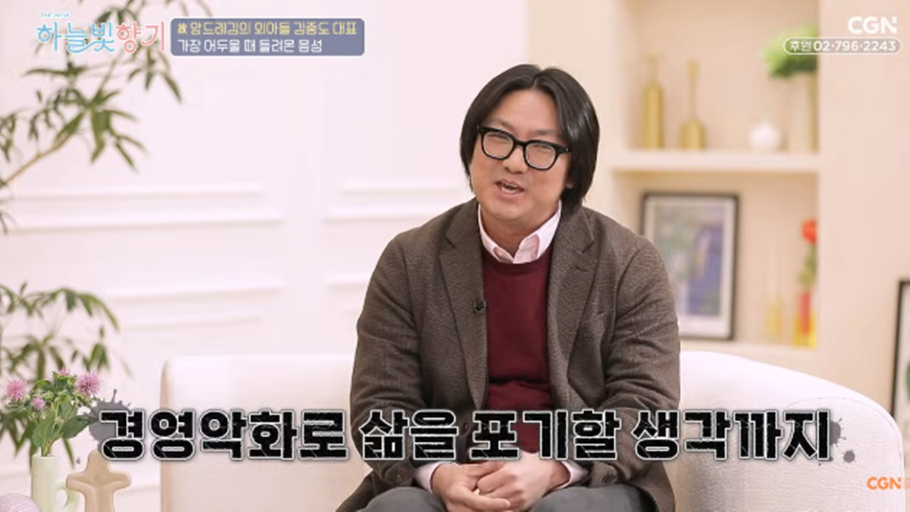 그는 “2024년 정도에 회사 자금이 어려워지면서 ‘내가 왜 이렇게 힘들어야 하지? 아버지는 왜 돌아가셔서 나를 힘들게 하지?’라는 원망 아닌 원망을 하다가 안 좋은 생각을 하게 됐다”고 했다. 그러면서 “밤에 건물 옥상에 올라가서 ‘안 좋은 선택을 해야 하나’라는 생각까지 했다”고 전했다.