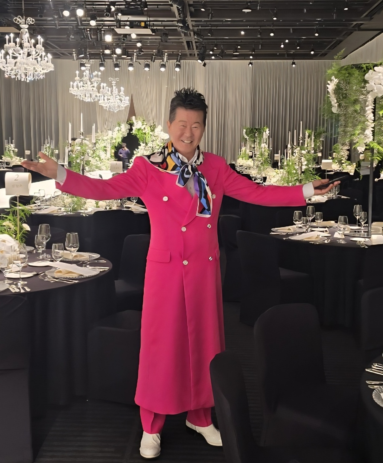 가수 태진아가 신곡 '가시여인아' 무대에서 선보이고 있는 '스카프 패션'이 가요계를 넘어 패션 업계의 주목을 받고 있다.