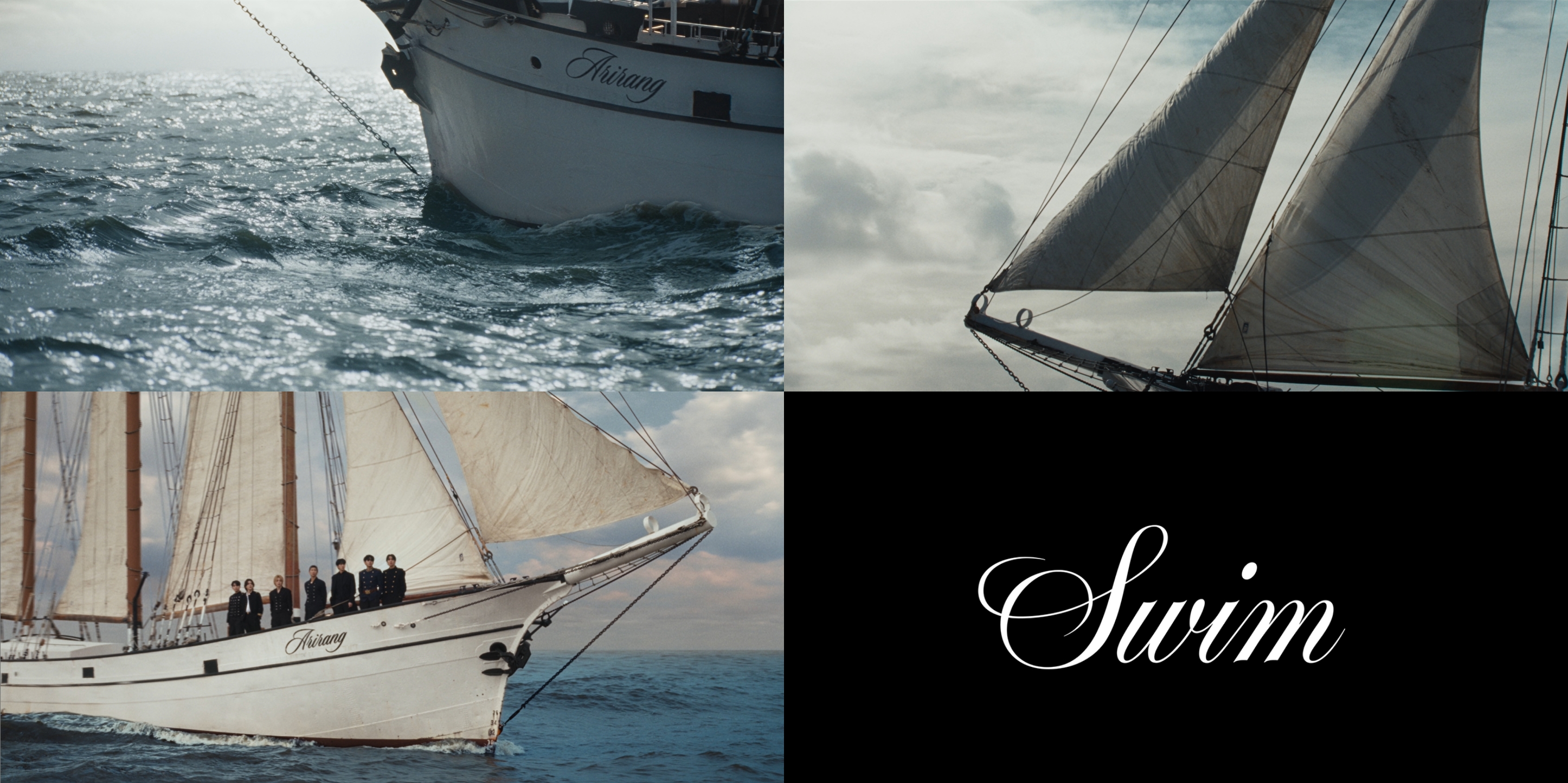 오늘(19일) 컴백을 하루 앞둔 방탄소년단은 새 앨범 '아리랑'의 타이틀곡 '스윔(SWIM)' 뮤직비디오 티저 영상을 추가로 공개하며 컴백 열기를 끌어올렸다. 영상에는 바다를 가르며 나아가는 흰 범선의 뱃머리에 일곱 멤버들이 등장해 웅장한 분위기가 담겼다.